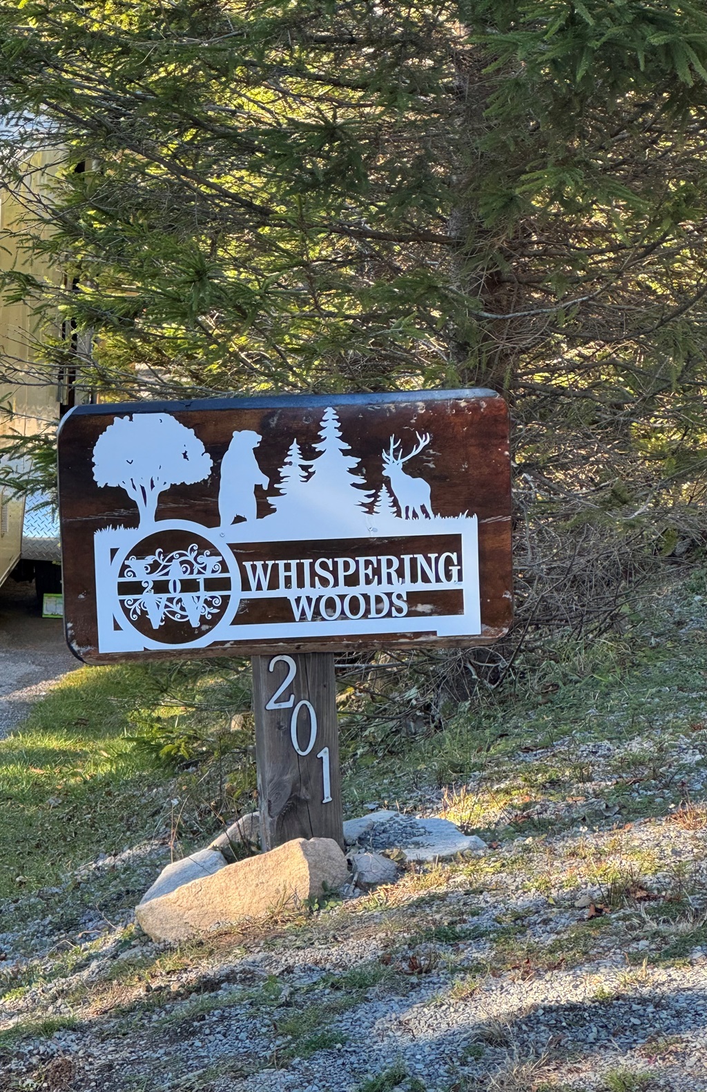 From the south entrance : follow Snowshoe drive, past the top of the mountain, about 1/2 mile up, you see a lighted sign “South Westridge Rd”, take that exit, and it will be the 3rd home on your left. There is a sign on the side of the road “201 Whispering Woods”.